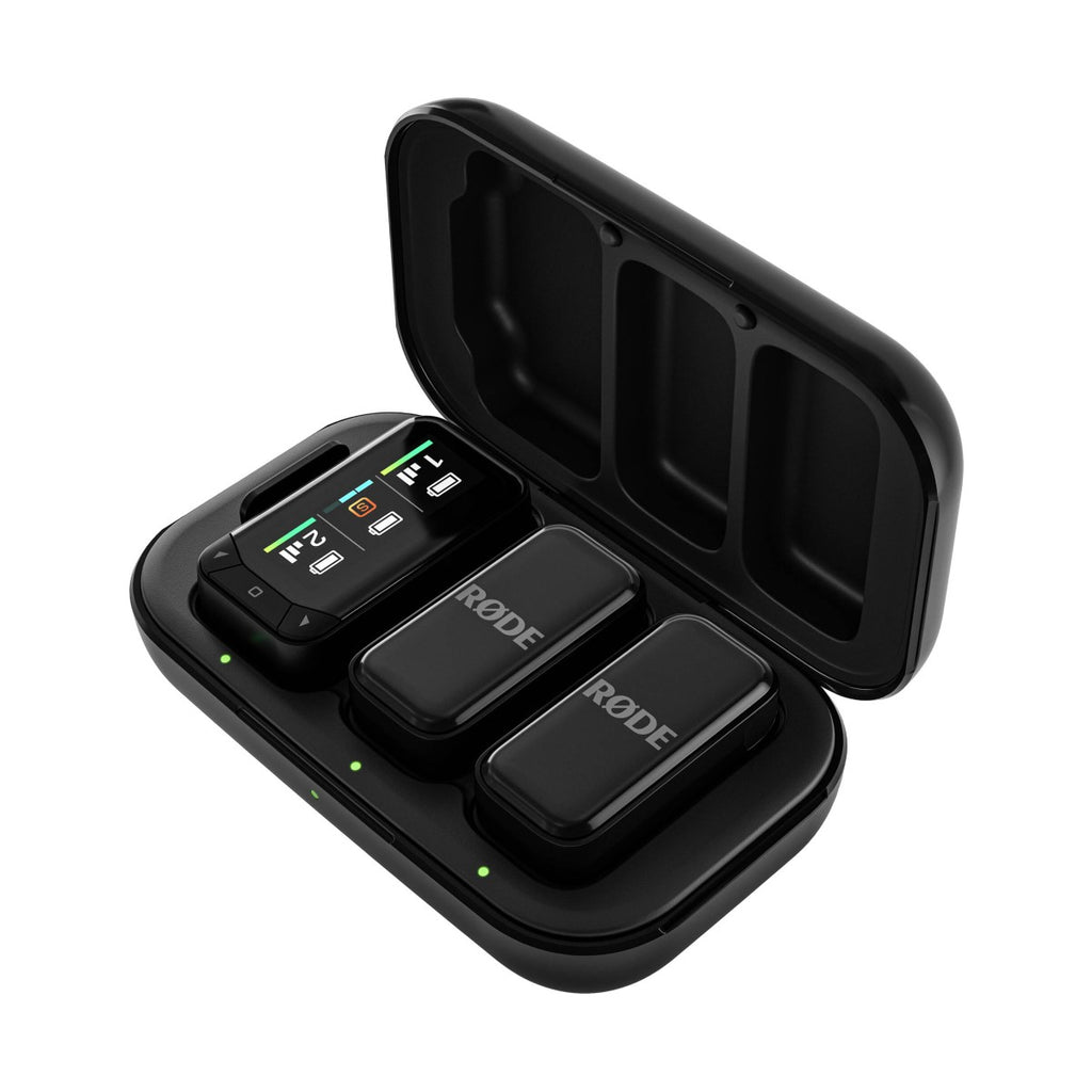 The compact transmitters offer a discreet look that won’t draw attention, and can be easily clipped to clothing or secured using the included magnetic mounts, giving you plenty of versatile, wardrobe-friendly mounting options. Each transmitter’s electret-condenser microphone has an omnidirectional pickup pattern that captures sound evenly from all directions, ensuring consistent audio levels even if the speaker turns away from the mic. Furthermore, RODE’s Intelligent GainAssist Technology automatically adjusts your audio levels, eliminating the need for manual setup and guaranteeing great sound with zero hassle.