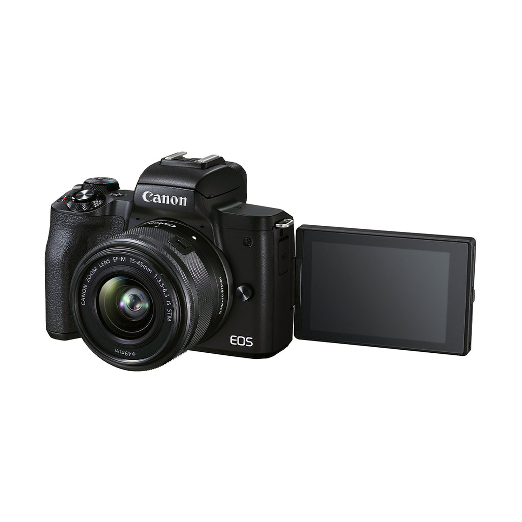 The EOS M50 Mark II camera features a 3.0-inch, 1.04 Megapixel Clear View LCD II Vari-angle Touchscreen LCD. Brightness is adjustable and its extensive flexibility makes it easy to compose and shoot from virtually any angle, making selfies simple and enabling the LCD to fold away when not in use. Touchscreen features include quickly changing settings, reviewing stills and videos, and even AF point selection.
